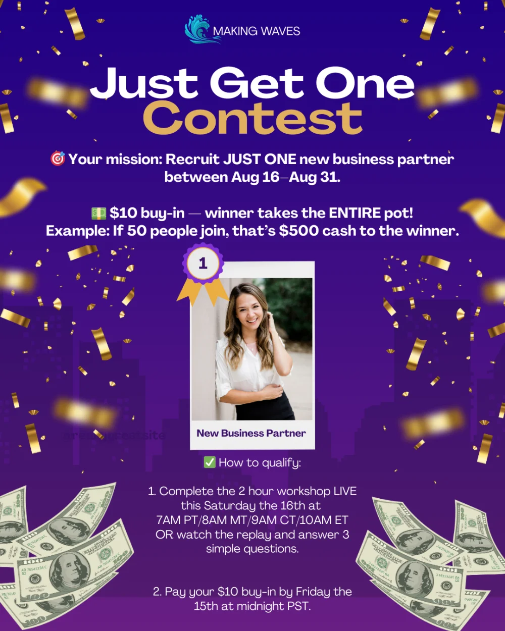 Register for our "JUST GET ONE" CONTEST + FREE REP WORKSHOP